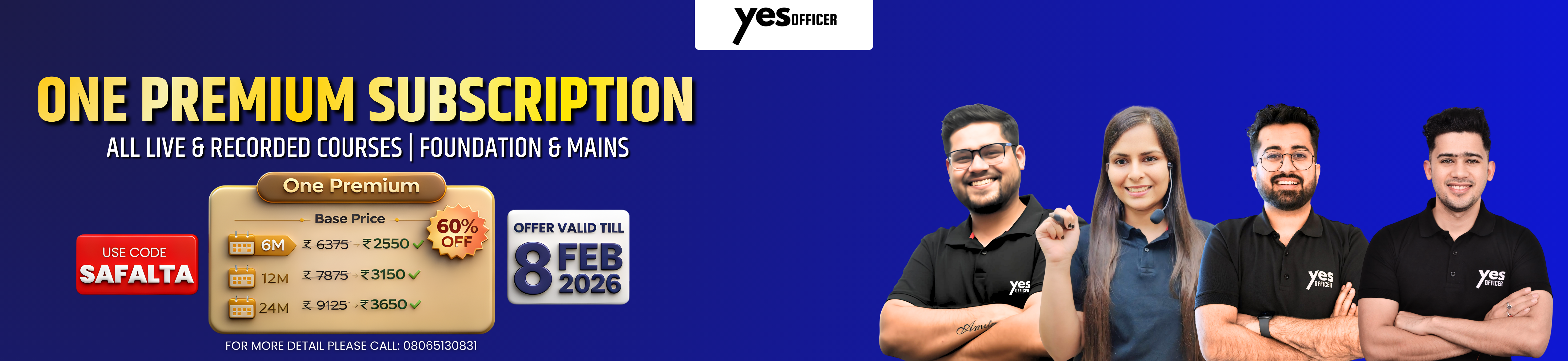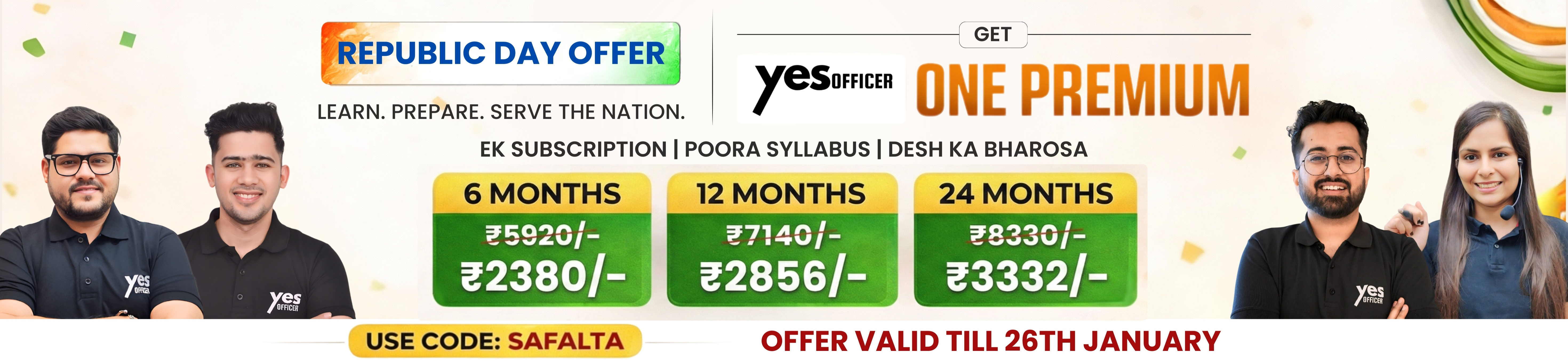 YesOfficer offers multiple subscription plans with different validity periods, including access to live classes, recorded videos, mock tests, PDFs, and practice material.