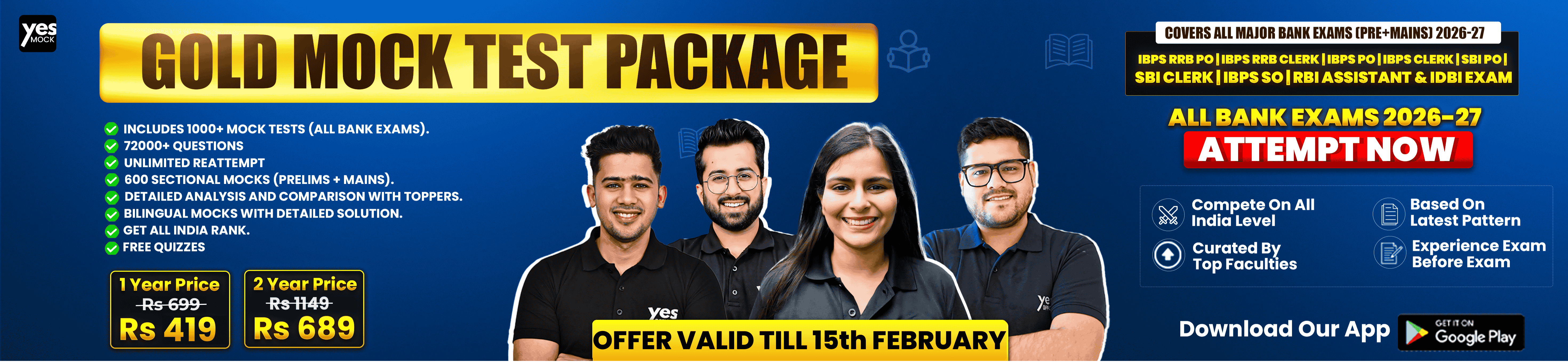 Aspirants preparing for SBI PO/Clerk, IBPS PO/Clerk, RRB, RBI Assistant, LIC AAO, and other banking exams can benefit from YesOfficer courses.